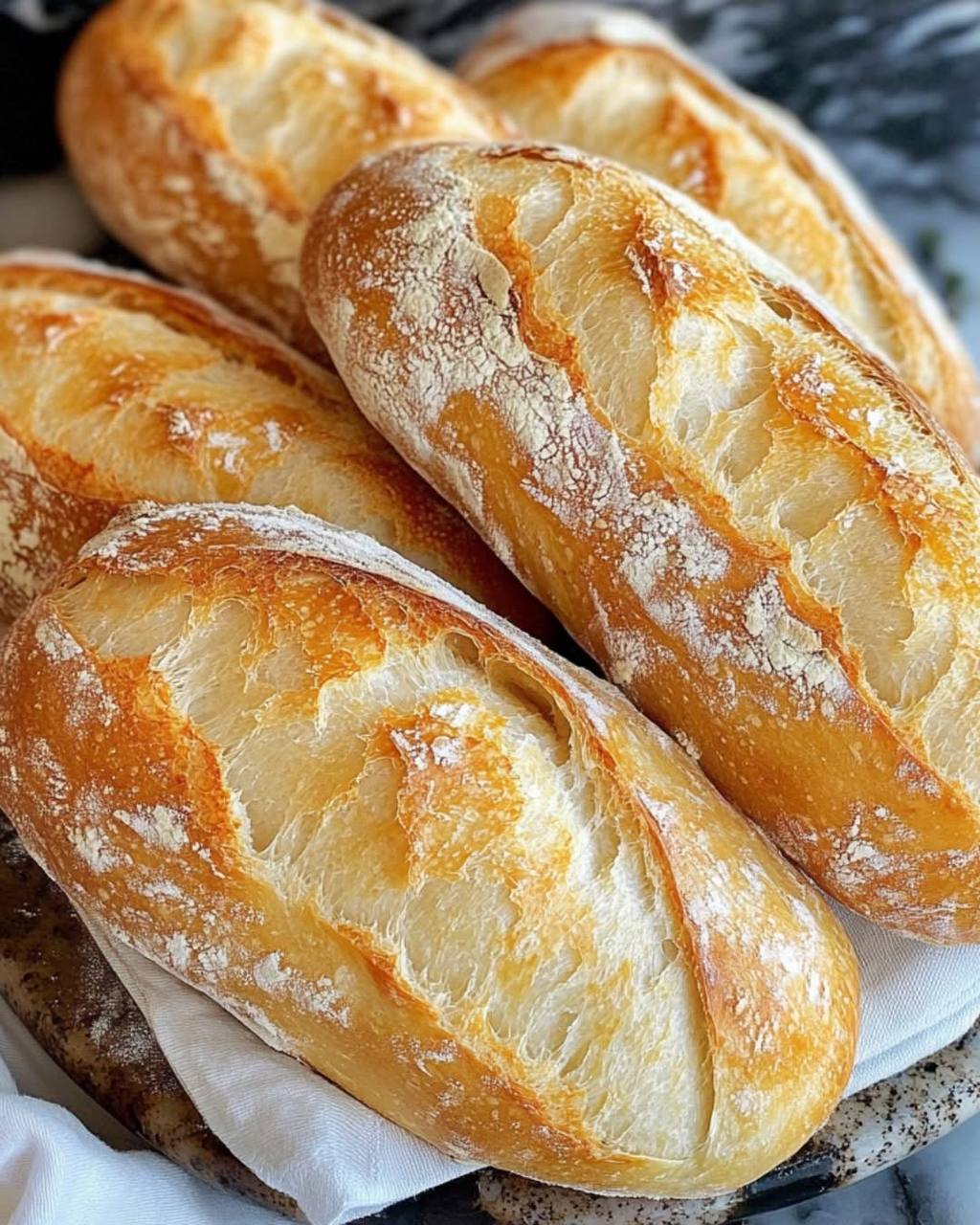 Achieving that iconic crusty exterior and airy interior requires a few key techniques. First, steam is your secret weapon. When you introduce steam into the oven at the beginning of baking, it keeps the surface of the dough moist, allowing it to expand fully before the crust sets. This leads to a thinner, crispier, and more blistered crust. You can achieve this by pouring hot water or tossing ice cubes into a hot pan on the bottom rack of your oven, or by misting the oven walls with a spray bottle during the first few minutes of baking. Just be cautious of the steam! Second, scoring the baguettes isn’t just for aesthetics; it provides an escape route for gases, allowing the bread to expand predictably and preventing uncontrolled cracks. Use a very sharp blade and make quick, confident slashes. Don’t be afraid to experiment with different scoring patterns. For variations, consider adding a tablespoon of dried herbs like oregano or rosemary to the dough during the mixing stage for an aromatic twist. You could also sprinkle the tops with sesame seeds or poppy seeds after shaping and before the second rise for added texture and flavor. For a slightly chewier crumb, try using bread flour instead of all-purpose flour.