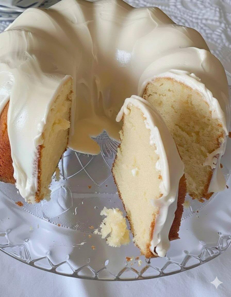- While the cake cools, prepare the creamy glaze. In a medium bowl, whisk together the sifted powdered sugar, melted butter, heavy cream (or milk), vanilla extract, and a pinch of salt until smooth and creamy. If the glaze is too thick, add a tiny bit more cream; if too thin, add a bit more powdered sugar.